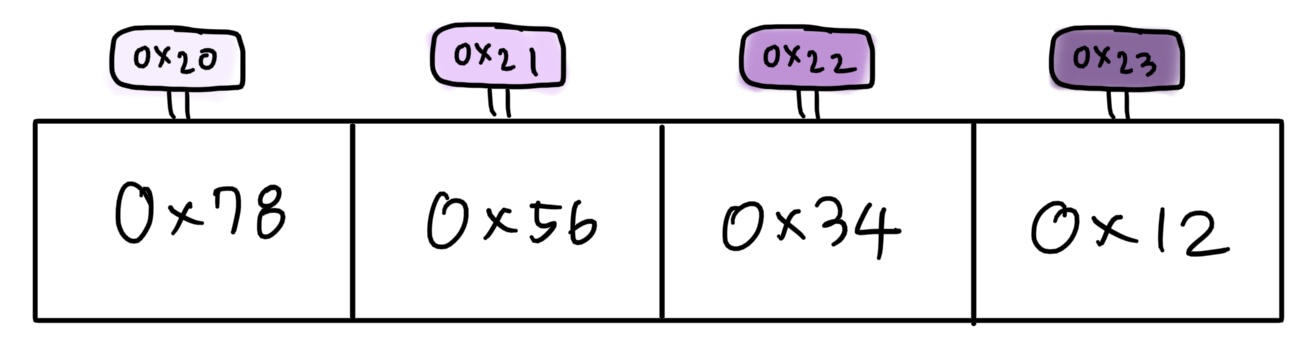 연속된 바이트를 메모리에 저장할때 어떤 순서로 저장할지 정하는것